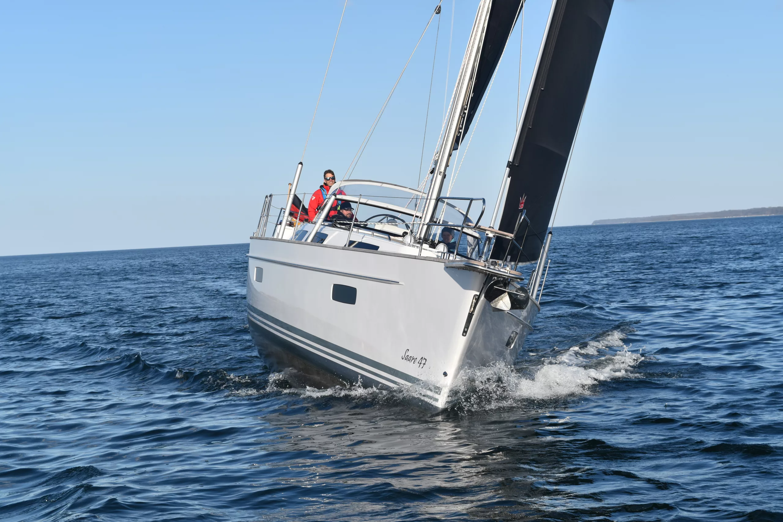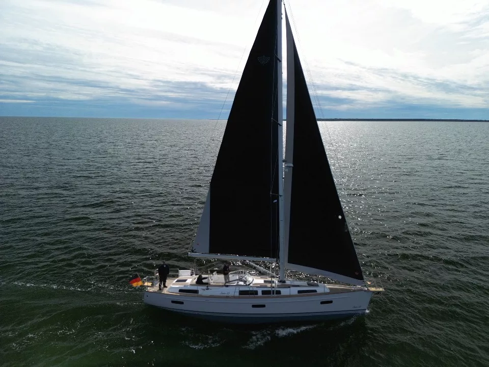Die exzellenten Segel von Elvström können komfortabel aufgerollt werden (Rollfock und Rollgroßsegel).