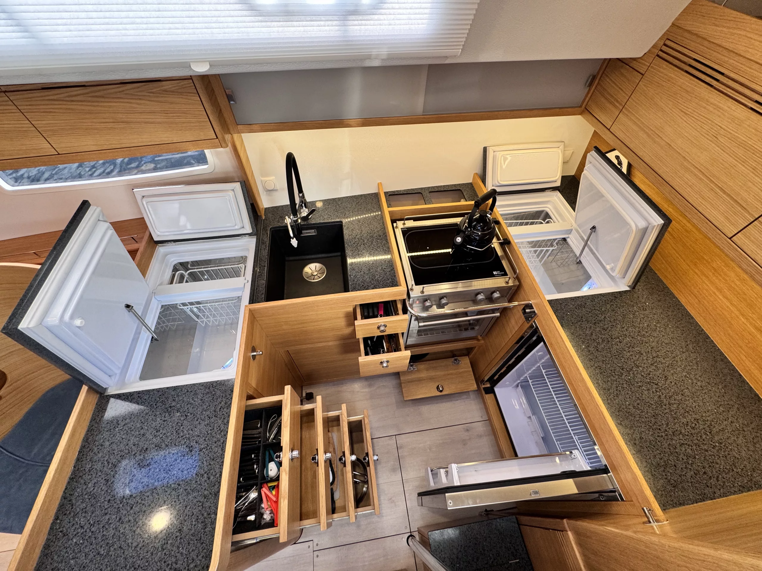 Diese Saare 47 ist exzellent und sehr umfangreich ausgestattet, perfekt für längere Reisen. Sie hat nicht nur eine sehr große Lithium Batteriebank mit 2 Batterien a